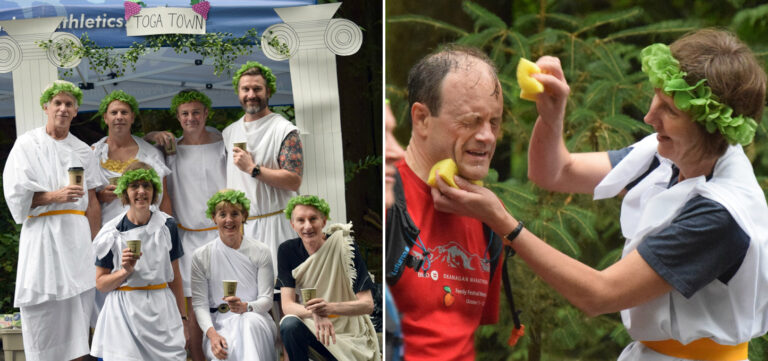 You can expect to see a lot of things along the trails in North Vancouver, but a toga party and Roman baths probably weren’t on the list. Another great effort by Pat Love and her crew to bring humour and entertainment…